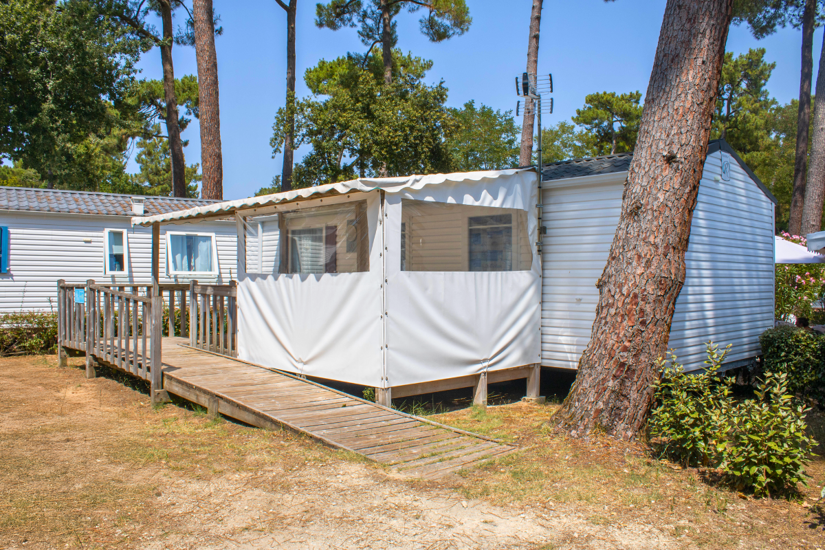 Le mobil-home Galion PMR est spécialement conçu pour les personnes à mobilité réduite, afin d’offrir à chacun des vacances confortables et accessibles au Camping Le Dauphin.
